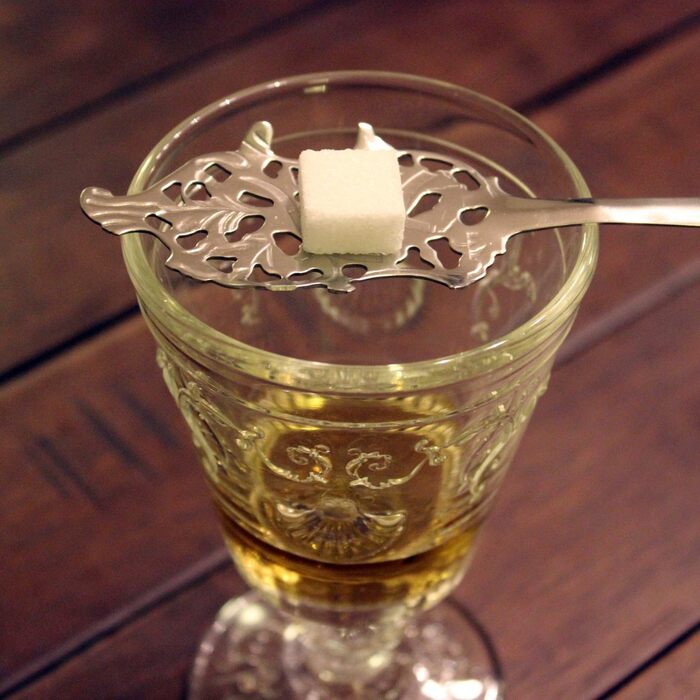 Kocka bijelog šećera se postavlja na ravnu površinu žlice za absint. Hladna voda se polijeva preko kocke i polako otapa šećer, koji pada kroz perforacije absint žlice u čašu s absintom. Nakon nekoliko minuta, smaragdno zelena tekućina postaje mliječno bijele boje. Kada se popije prvi gutljaj, slatkoća šećera trebala bi savršeno suzbiti gorčinu absinta.